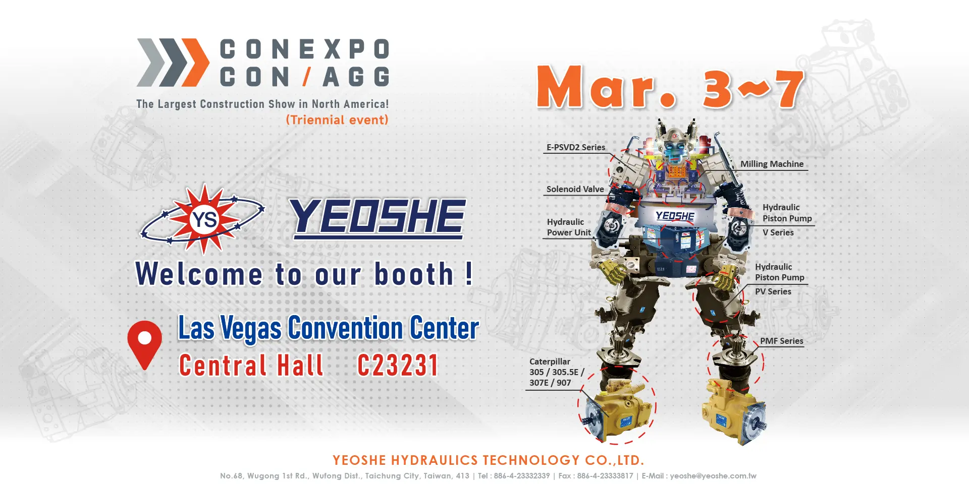 Founded in 1989, YEOSHE is a professional hydraulic manufacturer and designer of good-quality hydraulic pumps and machine in Taiwan. Endeavoring over 27 years, YEOSHE has established a reliable reputation in providing hydraulic pump, piston pump, hydraulic machine, Broaching Machine, hydraulic unit, gear & vane pump, hydraulic valve and others related components for both domestic and international markets.